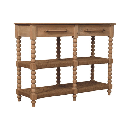 Wholesale and Dropshipping Savoy Bobbin Console with Jute Shelves